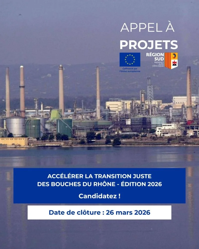 La Région Sud - Provence-Alpes-Côte d’Azur, autorité de gestion du Fonds pour une Transition Juste (FTJ) 2021-2027, lance un 4e appel à projets « Accélérer la transition juste des Bouches-du-Rhône ».